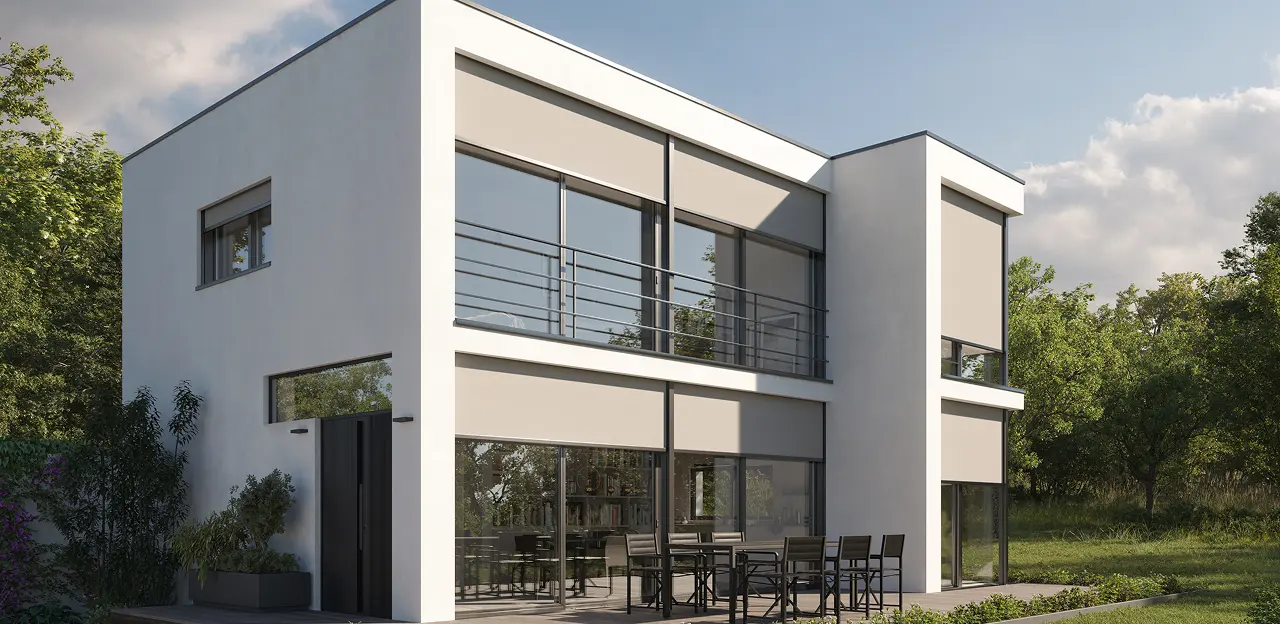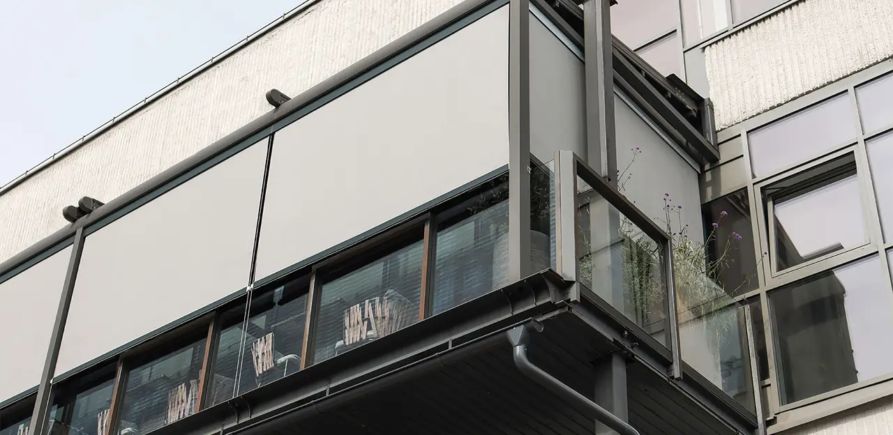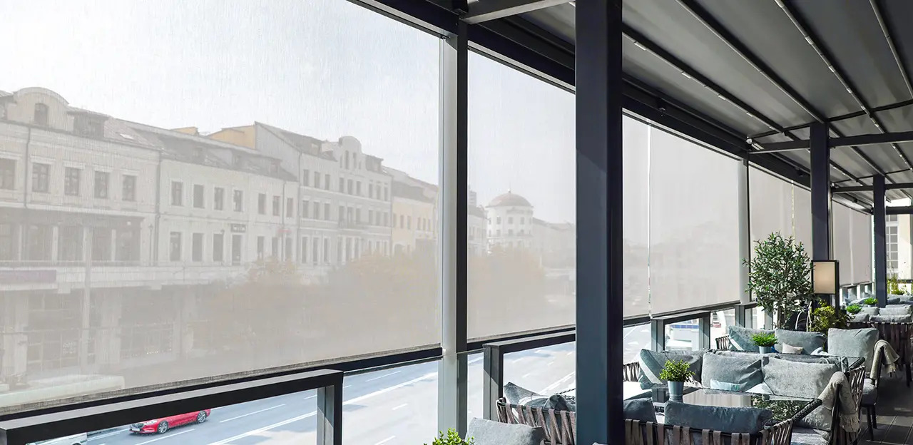 Наружные солнцезащитные системы не перегружают интерьер, долго служат и не требуют особого ухода. При производстве используются прочные материалы: алюминий и специальный текстиль.